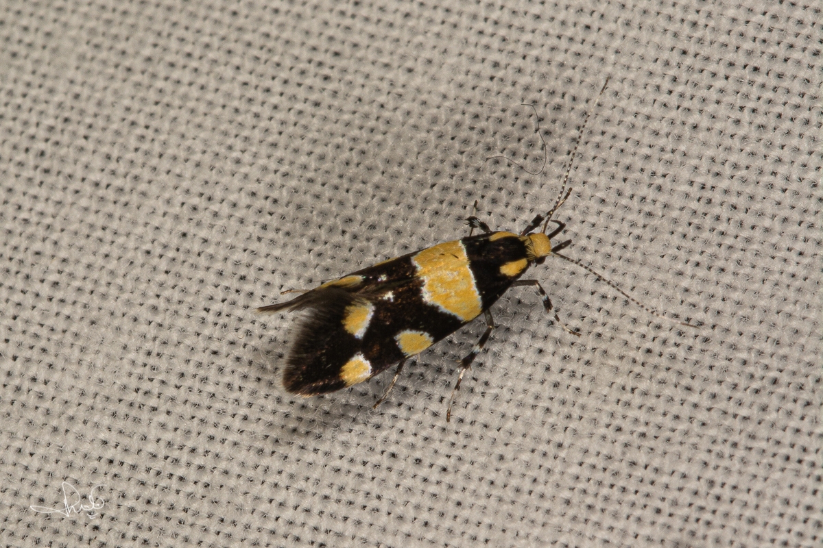 Groenling / European Greenfinch (Chloris chloris) Hertshooibladroller (Lathronympha strigana), micro Oosterse schone (Eratophyes amasiella) Populierenpijlstaart / Poplar Hawk Moth (Laothoe populi) - Naaldkunstwerkje (Bisingna procerella) Puta-uil / Shuttle-shaped Dart (Agrotis puta) Witte eenstaart - Chinese Character (Cilix glaucata)